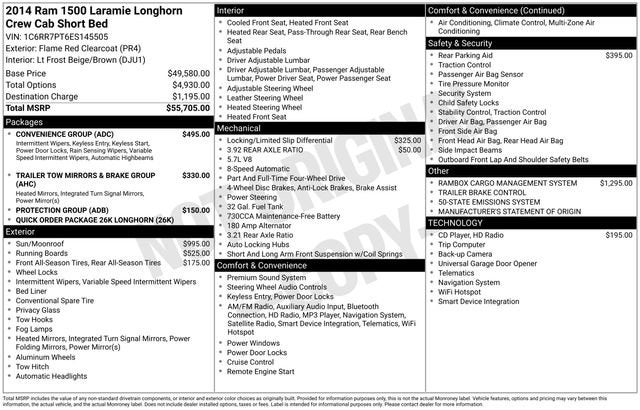 2014 Ram 1500 Laramie Longhorn 4WD 8-Speed Automatic HEMI 5.7L V8 Multi Displacement VVT Flame Red Clearcoat