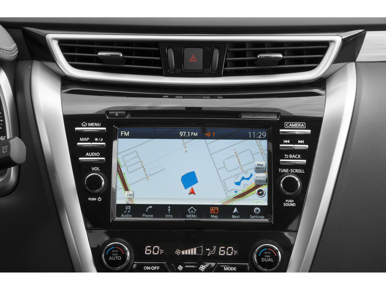 - Radio: AM/FM/CD Audio System w/Navigation -inc: 11 speaker Bose premium audio system, audio auxiliary input jack, NissanConnect w/Mobile Apps, 8" color display w/multi-touch control, front USB port, Bluetooth® hands-free phone system, streaming audio via Bluetooth®, hands-free text messaging assistant, SiriusXM satellite radio voice recognition for navigation and audio, SiriusXM Traffic, SiriusXM Traffic Link, rear USB port and HD radio