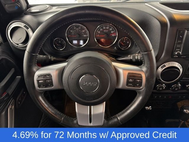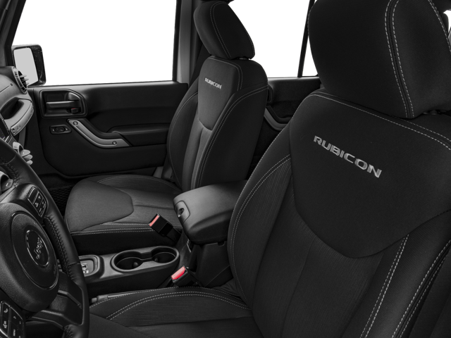 Inside, the Wrangler Unlimited Rubicon offers a premium cabin with leather-wrapped steering wheel, chrome/leather-wrapped shift knob, and silver interior accents. The heated front seats and automatic climate control ensure your comfort, no matter the weather.