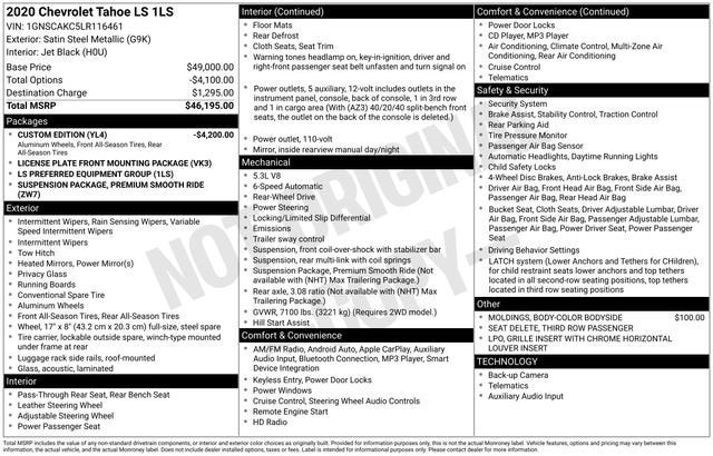 Experience the unparalleled combination of power, comfort, and technology that the 2020 Chevrolet Tahoe LS has to offer. Visit our showroom today and let our knowledgeable sales team demonstrate why this exceptional SUV should be your next vehicle.