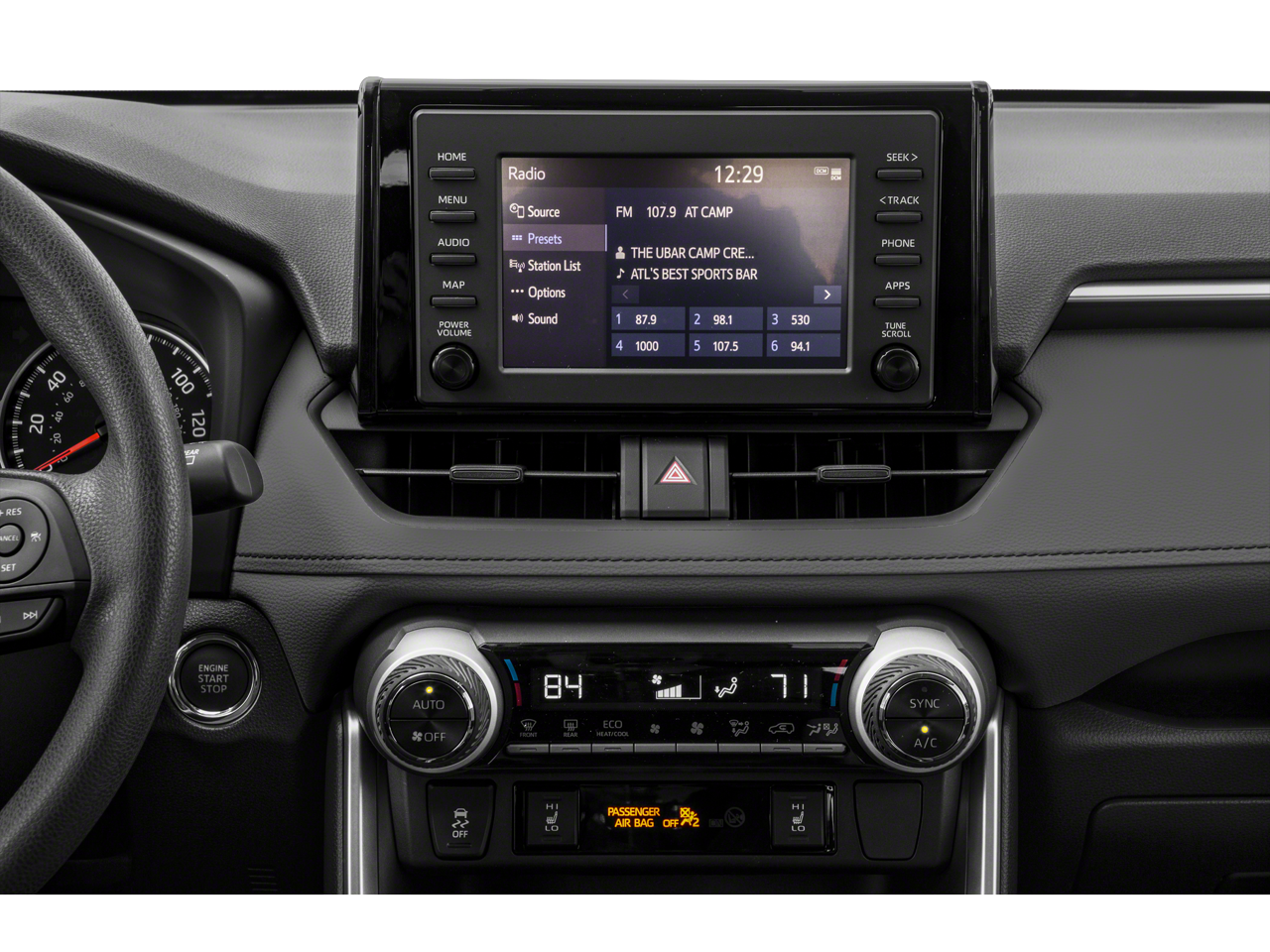 - Radio: AM/FM Stereo -inc: 6 speakers, 7.0" touchscreen, Scout GPS link compatible w/up to 3-year trial, Siri Eyes Free, Apple CarPlay compatible, aux port, USB media port, 4 USB charging ports, hands-free phone capability, advanced voice recognition and music streaming via Bluetooth® wireless technology, Toyota connected services - Safety Connect w/3-year trial, SiriusXM w/3-month all access trial, Wi-Fi Connect powered by Verizon w/up to 2GB within 6-month trial, See toyota.com/entune for details