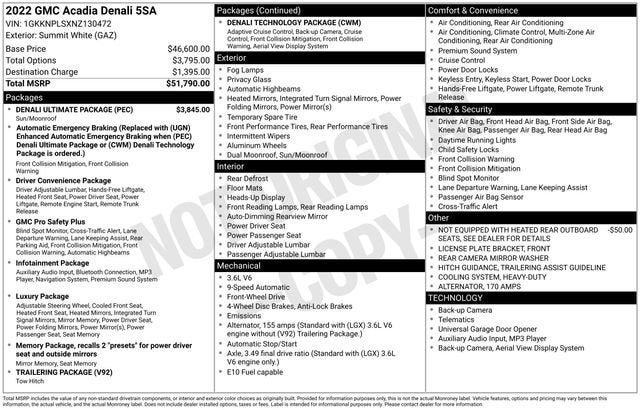 2022 GMC Acadia Denali FWD 9-Speed Automatic 3.6L V6 SIDI Summit White
