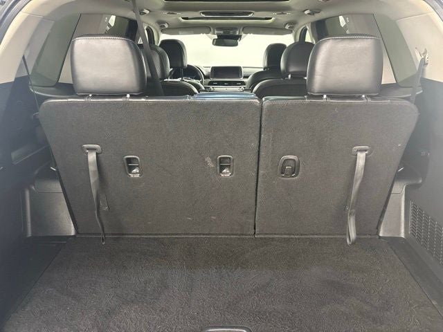 Towing Package (Self Leveling Rear Suspension and Tow Hitch w/Harness (TOF)), 10 Speakers, 3.648 Axle Ratio, 3rd row seats: split-bench, 4-Wheel Disc Brakes, ABS brakes, Air Conditioning, Alloy wheels, AM/FM radio: SiriusXM, Apple CarPlay & Android Auto, Auto High-beam Headlights, Auto-dimming Rear-View mirror, Automatic temperature control, Brake assist, Bumpers: body-color, Carpeted Floor Mats, Compass, Delay-off headlights, Driver door bin, Driver vanity mirror, Dual front impact airbags, Dual front side impact airbags, Electronic Stability Control, Emergency communication system: 911 Connect, Folding Cargo Tray, Four wheel independent suspension, Front anti-roll bar, Front Bucket Seats, Front Center Armrest, Front dual zone A/C, Front fog lights, Front reading lights, Fully automatic headlights, Garage door transmitter: HomeLink, harman/kardon® Speakers, Heated & Ventilated Front Bucket Seats, Heated door mirrors, Heated front seats, Illuminated entry, Knee airbag, Leather Seat Trim, Leather Shift Knob, Leather steering wheel, Low tire pressure warning, Memory seat, Navigation System, Occupant sensing airbag, Outside temperature display, Overhead airbag, Overhead console, Panic alarm, Passenger door bin, Passenger vanity mirror, Power door mirrors, Power driver seat, Power Liftgate, Power moonroof, Power passenger seat, Power steering, Power windows, Radio data system, Radio: AM/FM harman/kardon Audio System, Rear air conditioning, Rear anti-roll bar, Rear audio controls, Rear reading lights, Rear window defroster, Rear window wiper, Reclining 3rd row seat, Remote keyless entry, Roof rack: rails only, Security system, Smart Key w/ Push Button and Remote Start, Speed control, Speed-sensing steering, Split folding rear seat, Spoiler, Steering wheel mounted audio controls, Tachometer, Telescoping steering wheel, Tilt steering wheel, Traction control, Trip computer, Turn signal indicator mirrors, Variably intermittent wipers, Ventilated front seats, and Wheels: 20 x 7.5 Black Alloy.