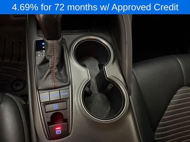 Step inside the Camry TRD V6, and you'll be greeted by a spacious and well-appointed interior. Enjoy the comfort of the sport-inspired seats, the convenience of the touchscreen infotainment system with Apple CarPlay and Android Auto, and the added luxury of the leather-wrapped steering wheel and shift knob. The TRD-exclusive design elements, including the matte black alloy wheels and the distinctive rear spoiler, further enhance the vehicle's sporty and refined aesthetic.
