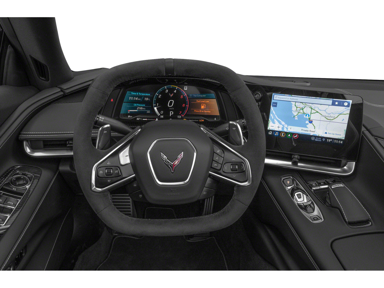 Beneath the striking black exterior lies a 6.2L V8 engine that delivers an exceptional 16 city/25 highway MPG, mated to an 8-Speed Dual Clutch transmission that seamlessly channels its 495 horsepower to the rear wheels. The Corvette's advanced suspension and steering systems provide a level of agility and responsiveness that will leave you in awe.